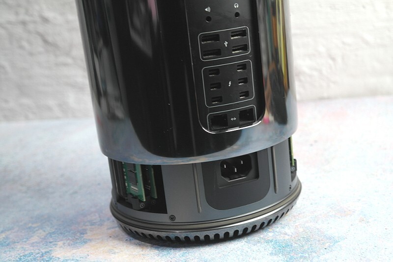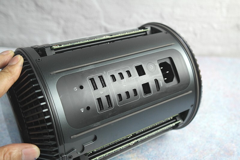 - 원통형 맥 프로는 높이만 25.1cm, 지름은 16.7cm에 불과합니다. 그럼에도 불구하고, 고성능 그래픽 카드로 12코어 프로세서 등을 소화할 수 있는 강력한 성능을 자랑했습니다.
