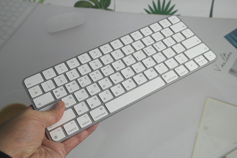 매직 키보드 현재 나오는 제품군 중 최신 제품 디자인입니다. 모서리가 기존의 제품보다 조금 더 동그랗게 디자인되었고 더 슬림 하고 작아 보이는 장점이 있습니다. 개인적으로 숫자 키가 없는 매직 키보드를 선호하지는 않지만 왠지 더 깔끔해진듯한 분위기입니다 .