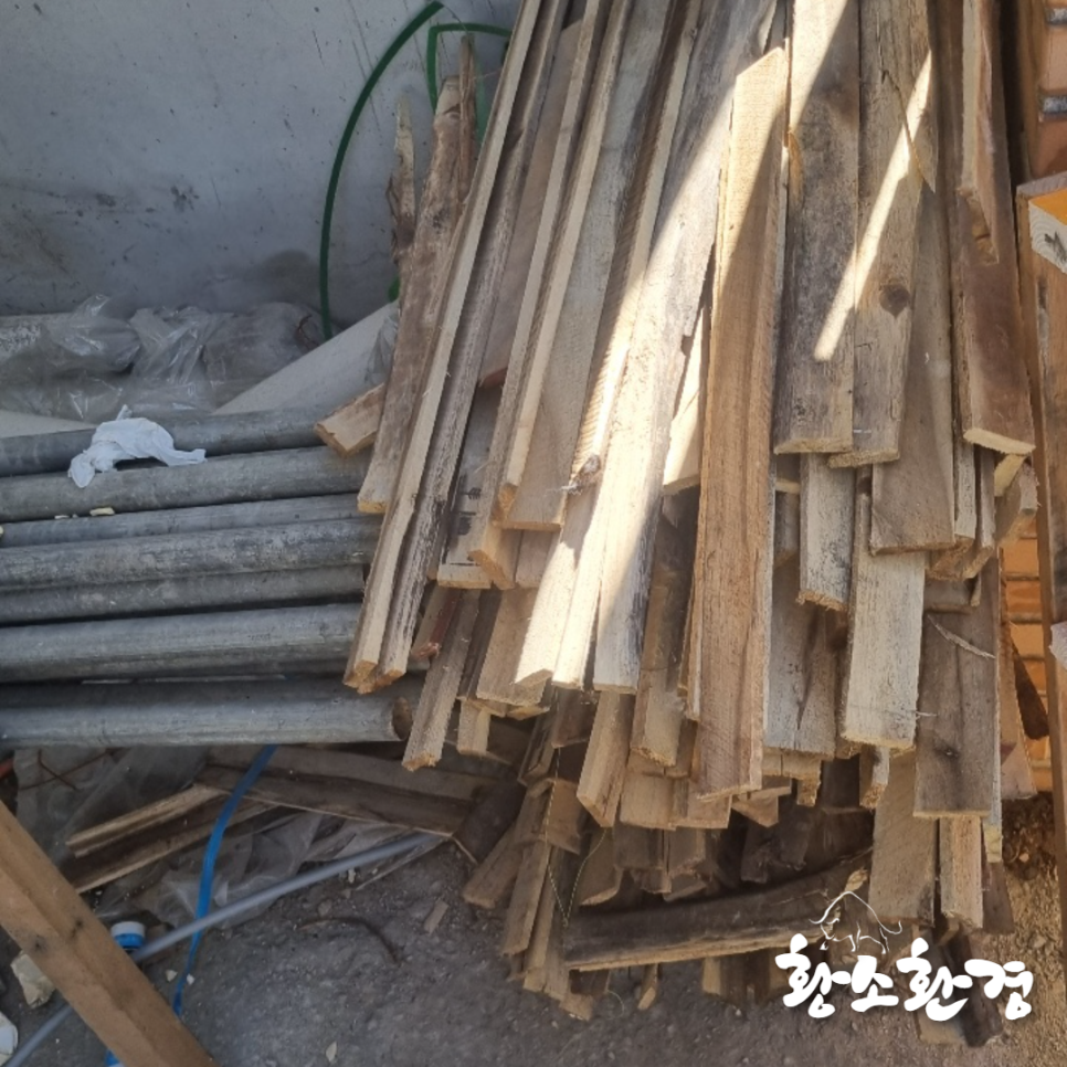 폐목들이 한가득 쌓여 있는 모습이 보입니다.