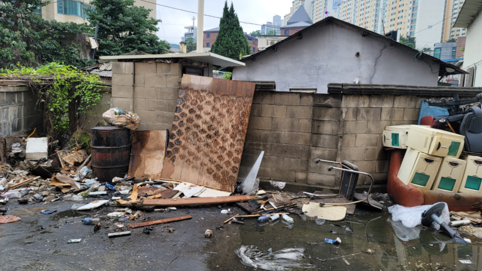 창고정리를 하시면서 목제 폐기물부터 시작하여 플라스틱과 스티로폼, 종이 등 다양한 폐기물을 밖에다가 쌓아 놓으신 상태라고 하는데요. 뿐만 아니라 안쪽에서 바깥쪽까지 전부 폐기물이 널브러져 있는 상황이라고 말씀해주셨습니다.