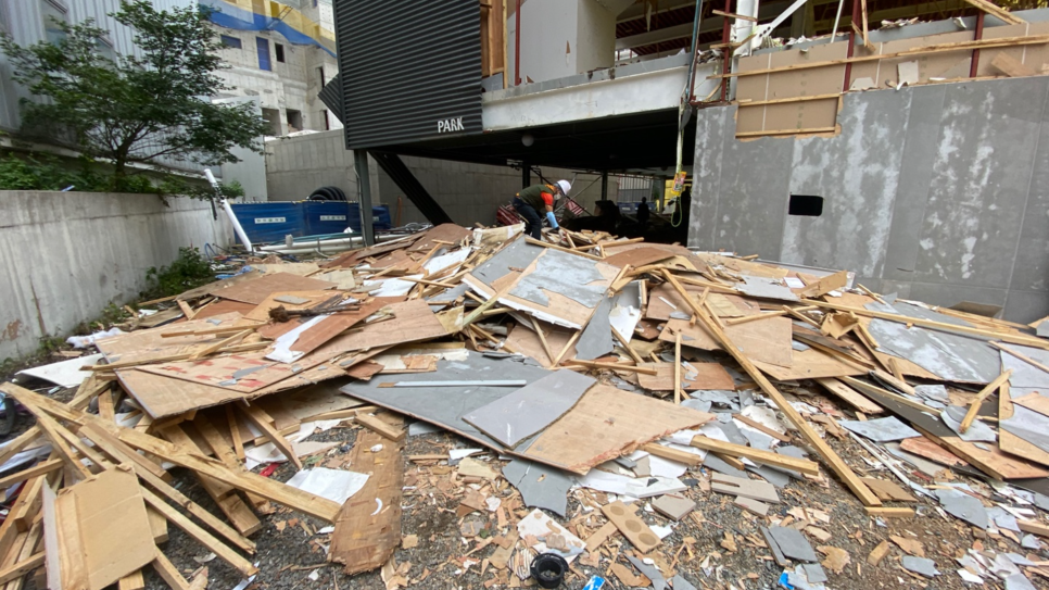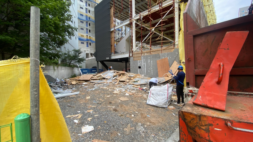 이번 현장은 철거를 하고 있는 현장인데요, 철거 현장 같은 경우에는 철거를 하다보면 많은 폐기물이 주변 이곳저곳에 쌓이게 됩니다.