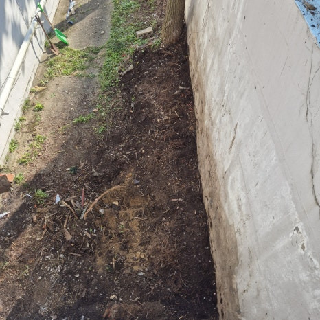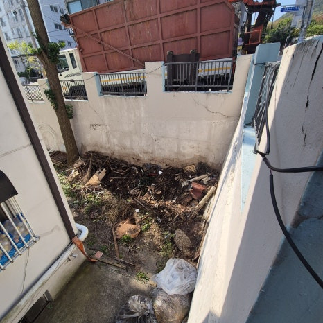 현장에 도착해서 찍어본 사진인데 아파트와 담벼락 사이가 워낙 좁고