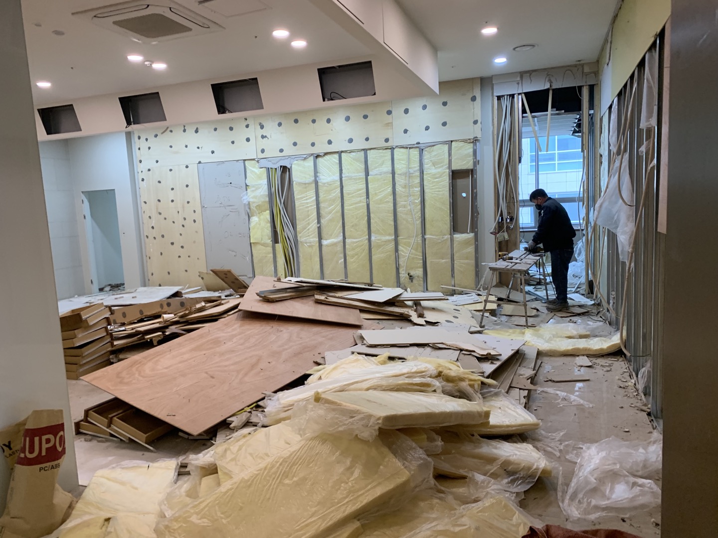 진료실과 주사실 등의 공간을 나누던 가벽들도 철거 진행을 합니다.