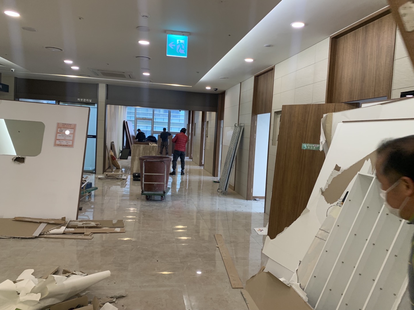병원 건물 내의 가벽과 천장이 다 철거되고 깔끔하게 정리된 마지막 모습입니다.