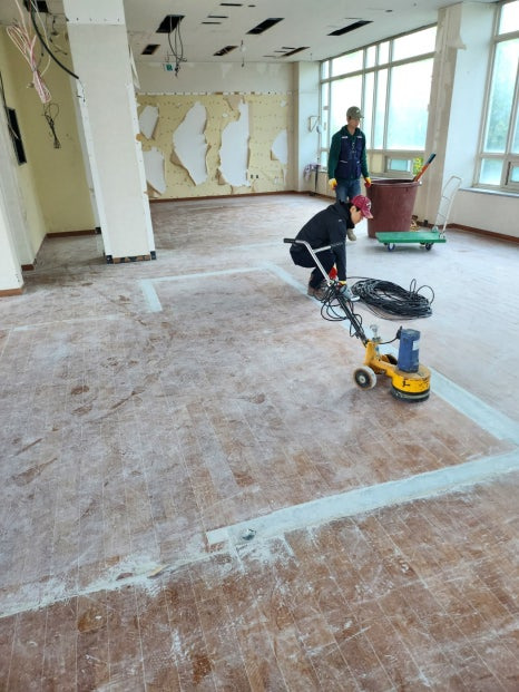 바닥 작업 진행하다가 사용하던 장비가 고장이나 수리 중 잠시 수작업 중인 모습입니다. (유튜브로 살짝 올려봤습니다.)