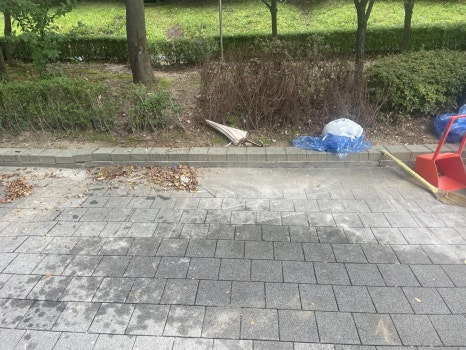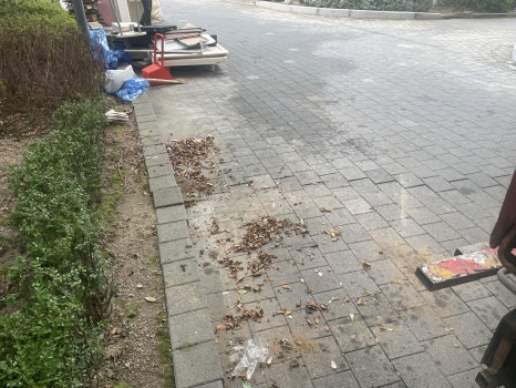 마지막 흙, 나뭇잎 쓰레기 등은 옆에 있는 빗자루로 다 정리 후 마무리해 드렸습니다."많은 양의 폐기물의 경우에는 스카이 차량이나 집게차 등의 중장비를 사용해야 하는데 저희는 자체적으로 소유하고 있어서 타 업체보다 신속하게 일 처리가 가능하다는 장점을 갖고 있습니다. "
