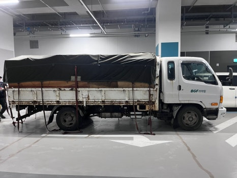 차량에 폐기물을 전부 적재 후 천막 처리까지 꼼꼼히 하고 난 후의 모습인데요