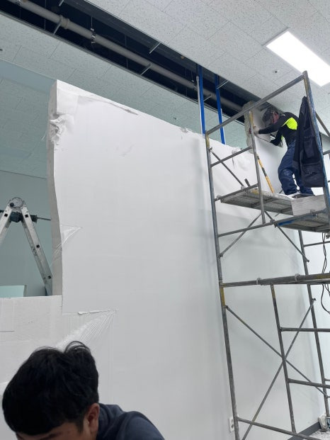 요 근래 작업했던 일반적인 나무 가벽들과 다른 새로운 자재의 모습이죠?