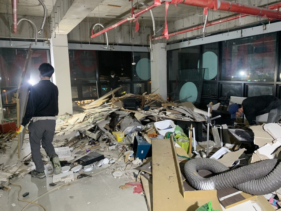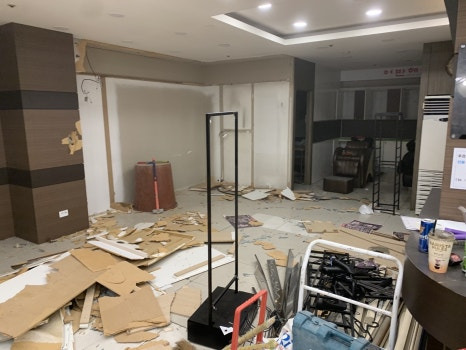 상가 내부에 있는 곳이기 때문에 주변 가게들에게도 피해가 갈 수 있어 최대한 일정을 맞춰 잡고 진행해야 하는데 오늘은 가벽까지만 철거 후 다음날 이어서 진행해 보겠습니다.