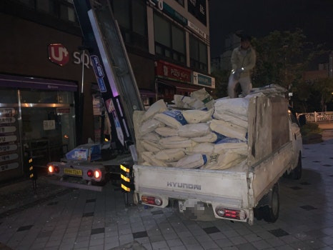 이틀 연이어 잡혔던 스케줄이지만 보람차게 끝내고 이제 편안한 마음으로 들어가 보겠습니다."많은 양의 폐기물의 경우에는 스카이 차량이나 집게차 등의 중장비를 사용해야 하는데 저희는 자체적으로 소유하고 있어서 타 업체보다 신속하게 일 처리가 가능하다는 장점을 갖고 있습니다. "