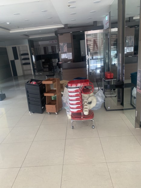 따로 빼놓아야 하는 기물과 장비 등을 먼저 실어 날랐고 이제 미용실 가벽부터 치기 시작해서 철거할 예정입니다.