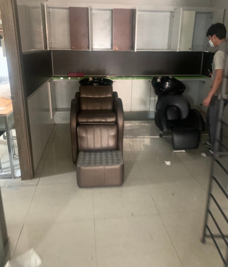 먼저 해체해서 철거해야 할 미용실 의자 샴푸대들이 보이네요