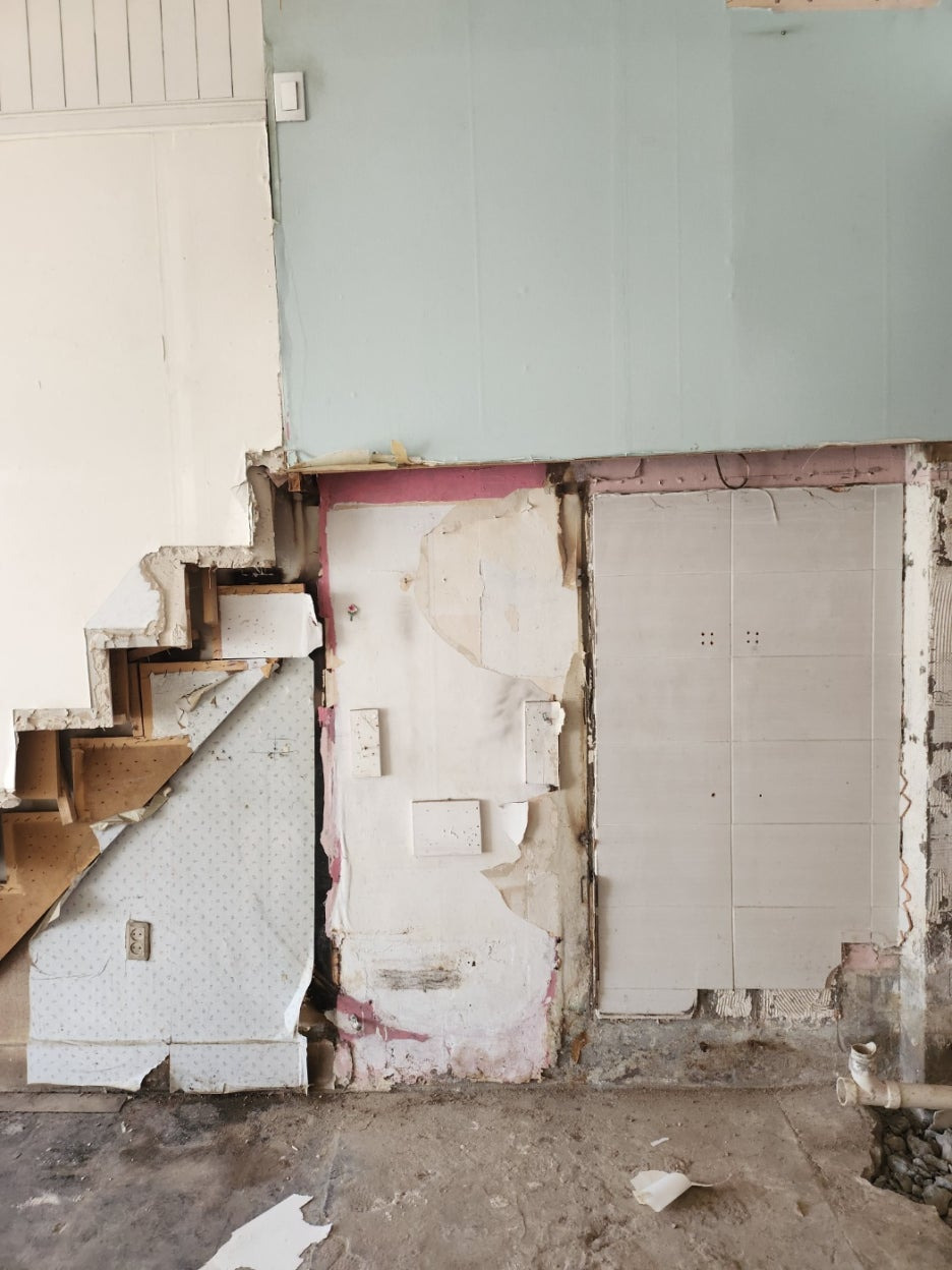 왼쪽 가벽은 뜯어낸 부분을 살펴보니 구조가 복층 계단처럼 생긴 모습이네요