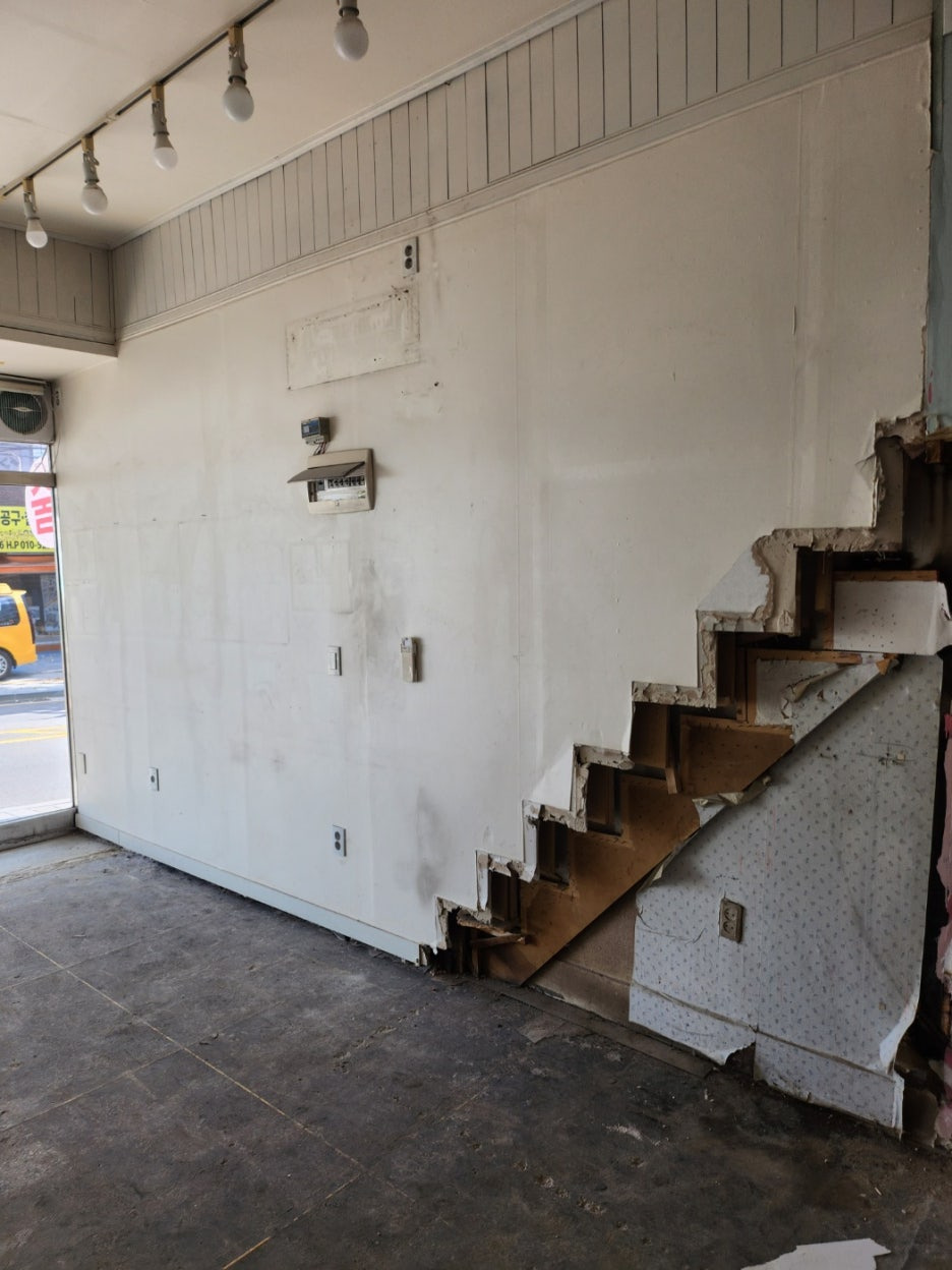 대림동 현장에 도착해서 찍어본 모습입니다.매장의 옆면 가벽 철거와 자재 폐기물 처리를 같이 요청해 주셨습니다.