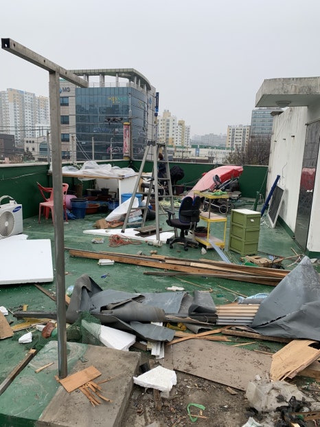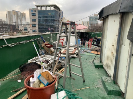 가건물은 다 철거되었고 이제 옥상에 남은 폐기물들만 치우면 됩니다.