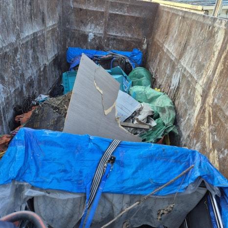 무게가 무겁지 않은 일반 혼합 쓰레기 종류이다 보니 운행 시 날리거나 떨어질 수 있어 적재함 위로 천막 처리를 꼼꼼하게 정리해놓고 출발할 준비를 합니다.