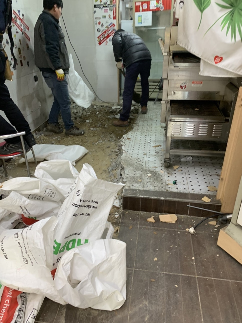 작업 내용: 피자집 내부 카운터 및 바닥 철거 후 폐기물처리