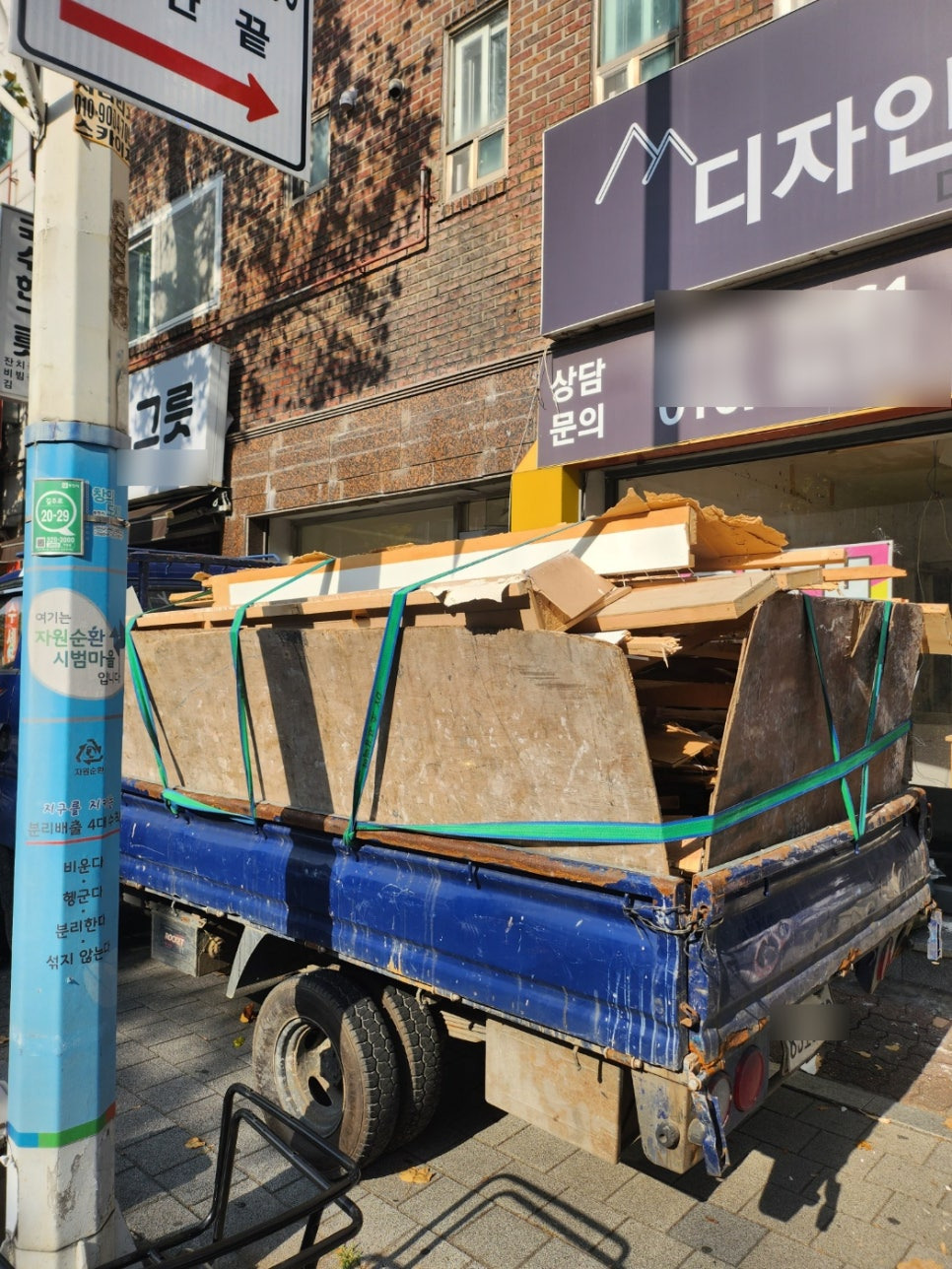 아까 먼저 보낸 폐목 폐기물 차량 외로 1톤 차량에 철거한 간판과 철제 구조물, 기타 남은 기물들까지 모두 챙겼습니다.