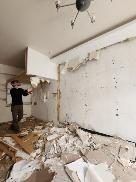 제일 큰 장식장이 있던 벽면의 가벽 쪽부터 해서 철거를 시작해 봅니다.