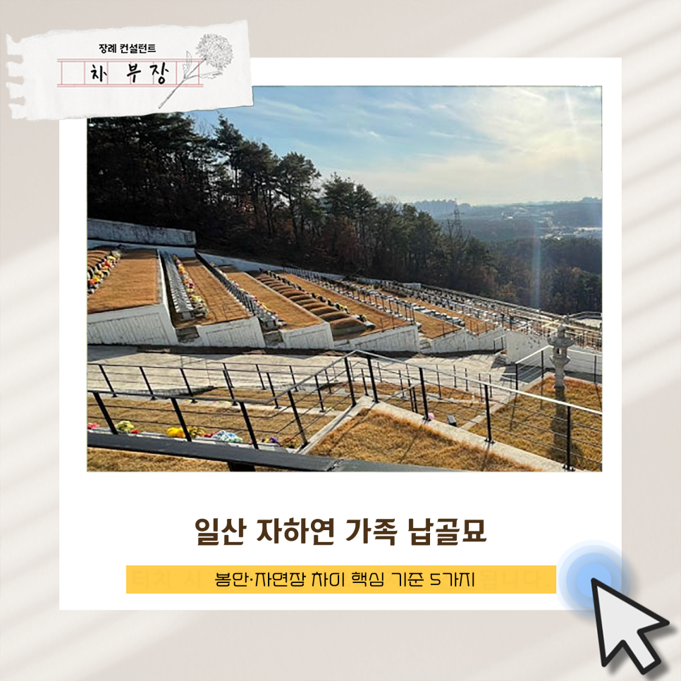 이전 시간에는 봉안·자연장 차이와 차 부장이 가장 먼저 안내하는 핵심 기준 5가지를 중심으로 일산 자하연 가족 납골묘를 소개하려고 합니다.