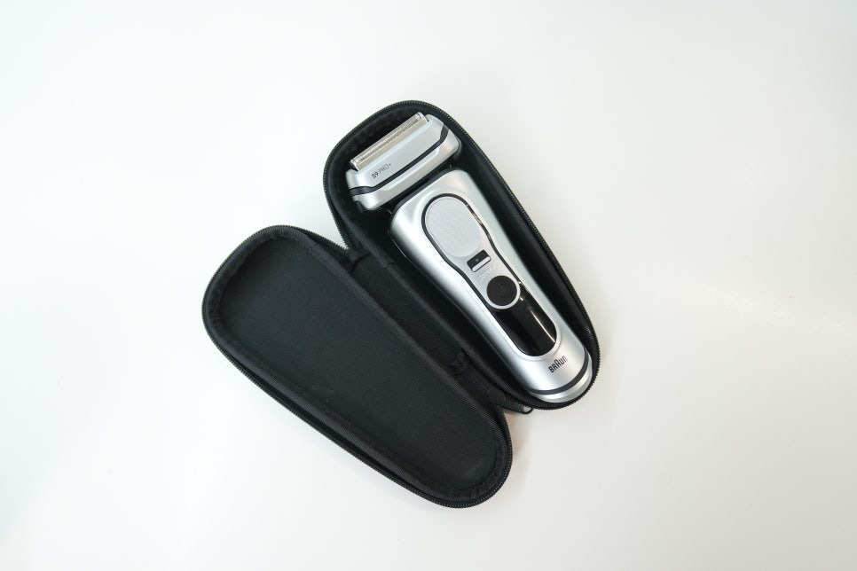 처음 박스를 열었을 때 느껴지는 인상은 군더더기 없는 구성과 정돈된 패키지였습니다. 케이스는 단단한 형태로 제공되어 여행이나 외출 시에도 휴대성이 높았으며, 본체와 충전 크래들, 클리닝 브러시, 설명서 등이 깔끔하게 정리되어 있었습니다. 박스 자체가 고급스럽게 마감돼 있어 전기면도기라기보다 프리미엄 액세서리를 개봉하는 느낌이 강했습니다.