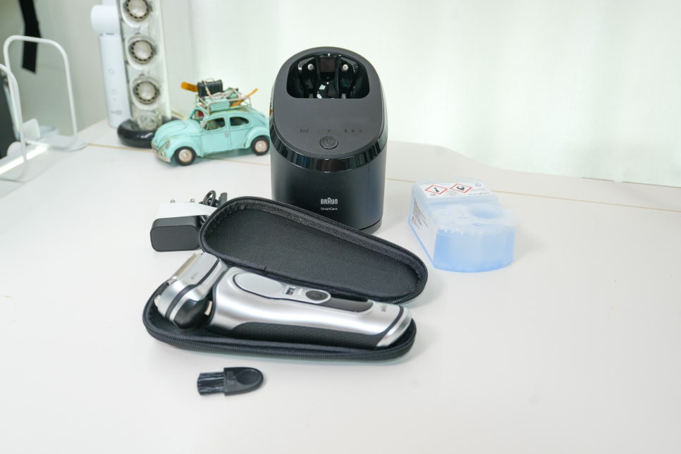 전기면도기는 단독 제품 같지만, 충전 시스템과 관리 방식이 생태계를 형성하는 경우가 많습니다. 브라운의 충전 크래들 및 클리닝 스테이션은 종합 관리 시스템 형태로 구성돼 효율적인 유지 관리가 가능합니다. 면도기 헤드 교체 시기도 앱이나 디스플레이를 통해 안내해 주기 때문에 별도로 기억하지 않아도 되는 점도 편리했습니다.