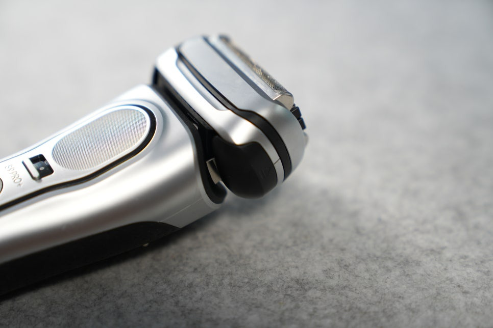 본체는 이전 시리즈보다 약간 더 안정적인 무게 균형을 느낄 수 있었습니다. 손에 잡았을 때 윗부분으로 쏠리는 느낌이 거의 없고, 손목을 많이 꺾지 않아도 자연스러운 선을 유지할 수 있었습니다. 면도 시 세밀한 제어가 필요한 턱 라인이나 콧수염 주변에서도 힘 조절이 편해 초보자도 쉽게 적응할 만한 구조였습니다.