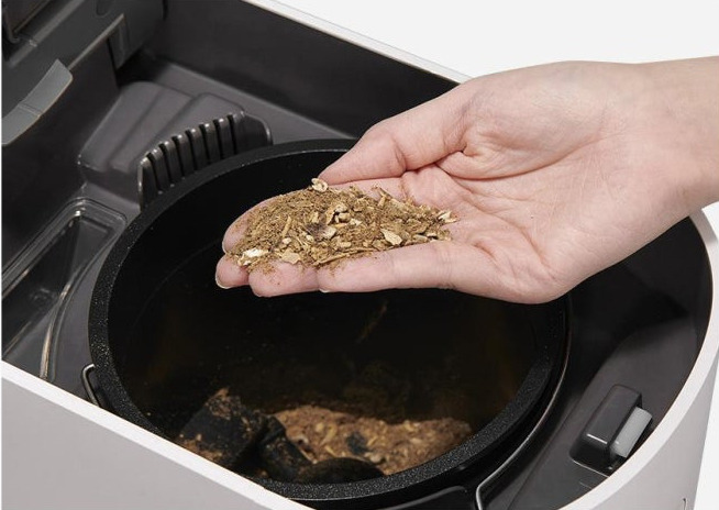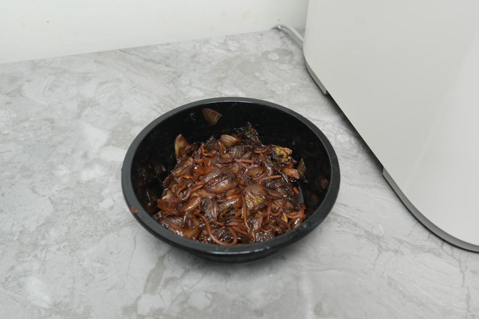 첫날은 테스트 삼아 간짜장이 남은 것은 등 간단한 음식물 찌꺼기를 쾌속모드로 처리해보았습니다. 1시간이 채 되지 않는 시간 안에 음식물은 건조되고, 내부에서는 은은한 열감만 느껴질 뿐 기계 소음은 거의 없었습니다. 특히 처리 과정에서 냄새가 거의 느껴지지 않는다는 점은 기존 음식물처리기에서 경험할 수 없었던 부분이었습니다.