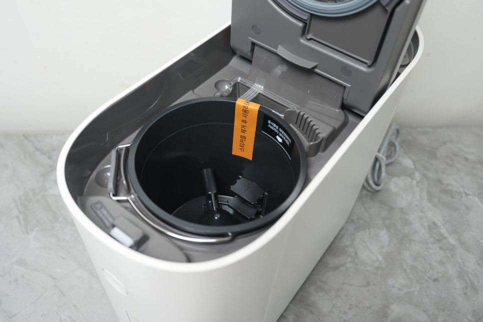 건조통이 들어 있는데, 2L 사이즈로 한 번에 많은 용량을 처리할 수 있어서 좋은 것 같습니다. 저희는 4식구인데, 시용해보니 굳이 한 번에 비우지 않고 여러번 사용해도 문제는 없는 것 같습니다.