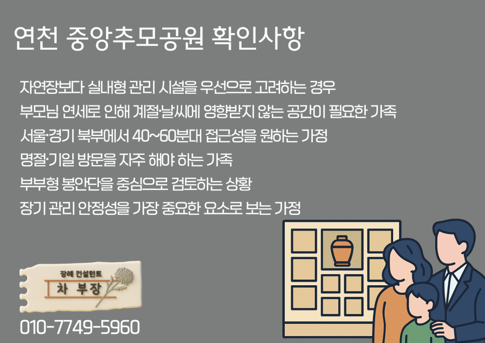차부장 상담 기준에서 중앙추모공원은 아래 조건을 가진 가정과 특히 잘 맞습니다.