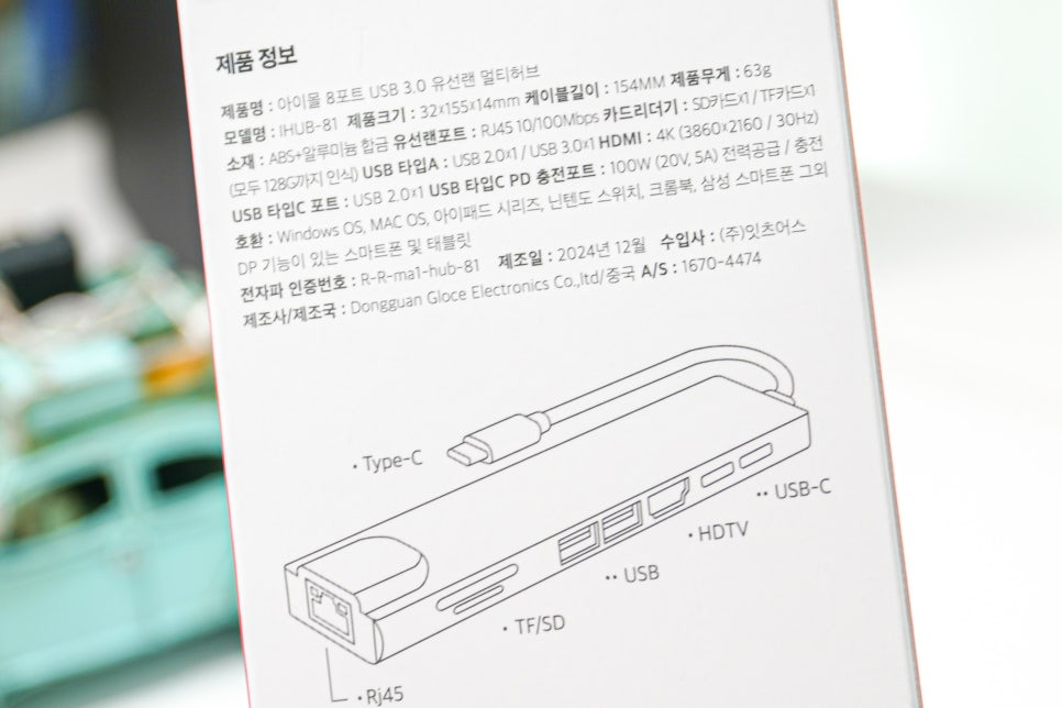 모델명 : IHUB-81 제품크기 : 32x155x14mm 케이블길이 : 154mm