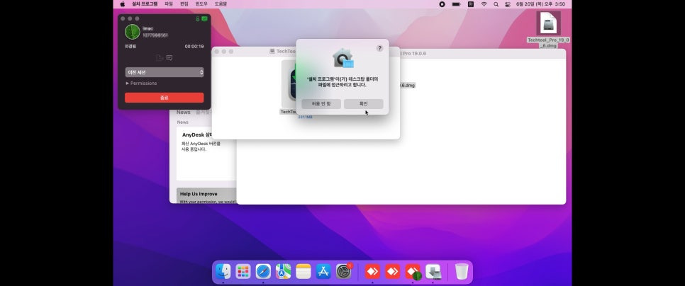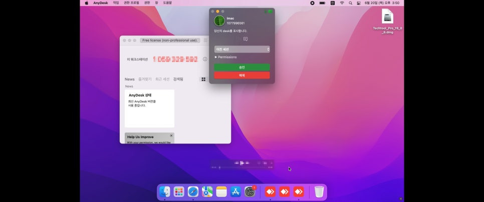 원격 접속에는 팀뷰어와 애니데스크 등 안정성이 검증된 프로그램이 사용됩니다. 맥 사용자 기준으로 초기 설치나 보안 권한 설정이 어렵게 느껴질 수 있는 부분도 단계별로 안내해 드리고 있습니다. 원격 접속 이후 필요한 테스트용 프로그램 설치와 세부 설정은 코리아맥 담당 엔지니어가 직접 진행합니다.
