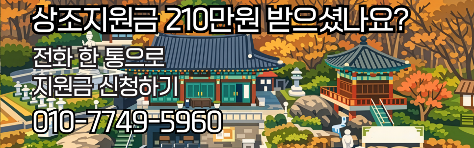 상조지원금은 유형별로 지급되며, 방문 없이 온라인으로도 신청이 가능하지만, 010-7749-5960 로 연락 주시면 빠르게 처리하여 부담을 줄일 수 있습니다. 필요하시면 준비 서류와 신청 경로를 바로 안내해드리니 언제든 연락 주시면 됩니다.